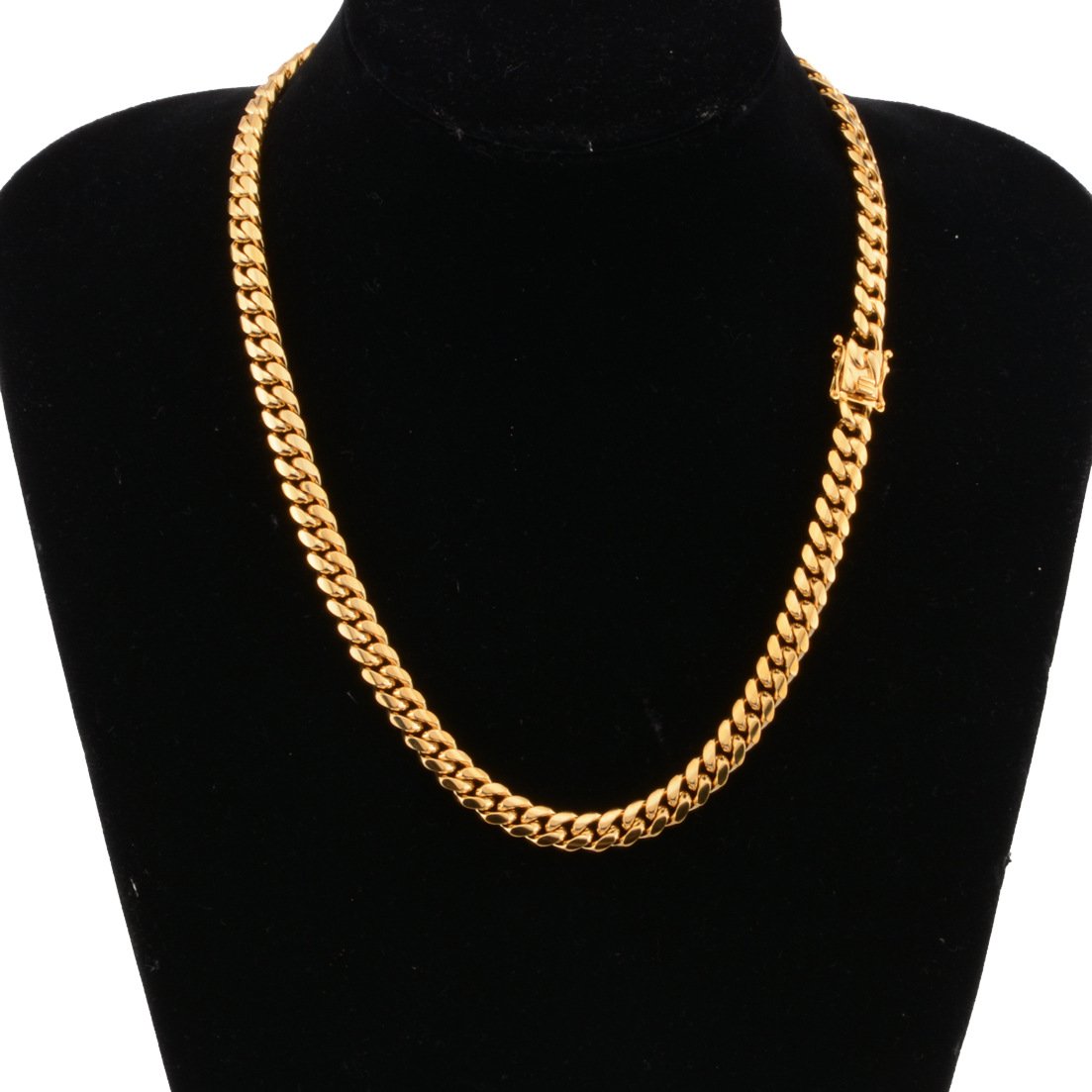 A1: Our basic Cuban chain is crafted from high-quality stainless steel or brass, with options for durable 14k or 18k gold plating including yellow gold, white gold, and rose gold finishes. This ensures long-lasting shine and resistance to tarnish.